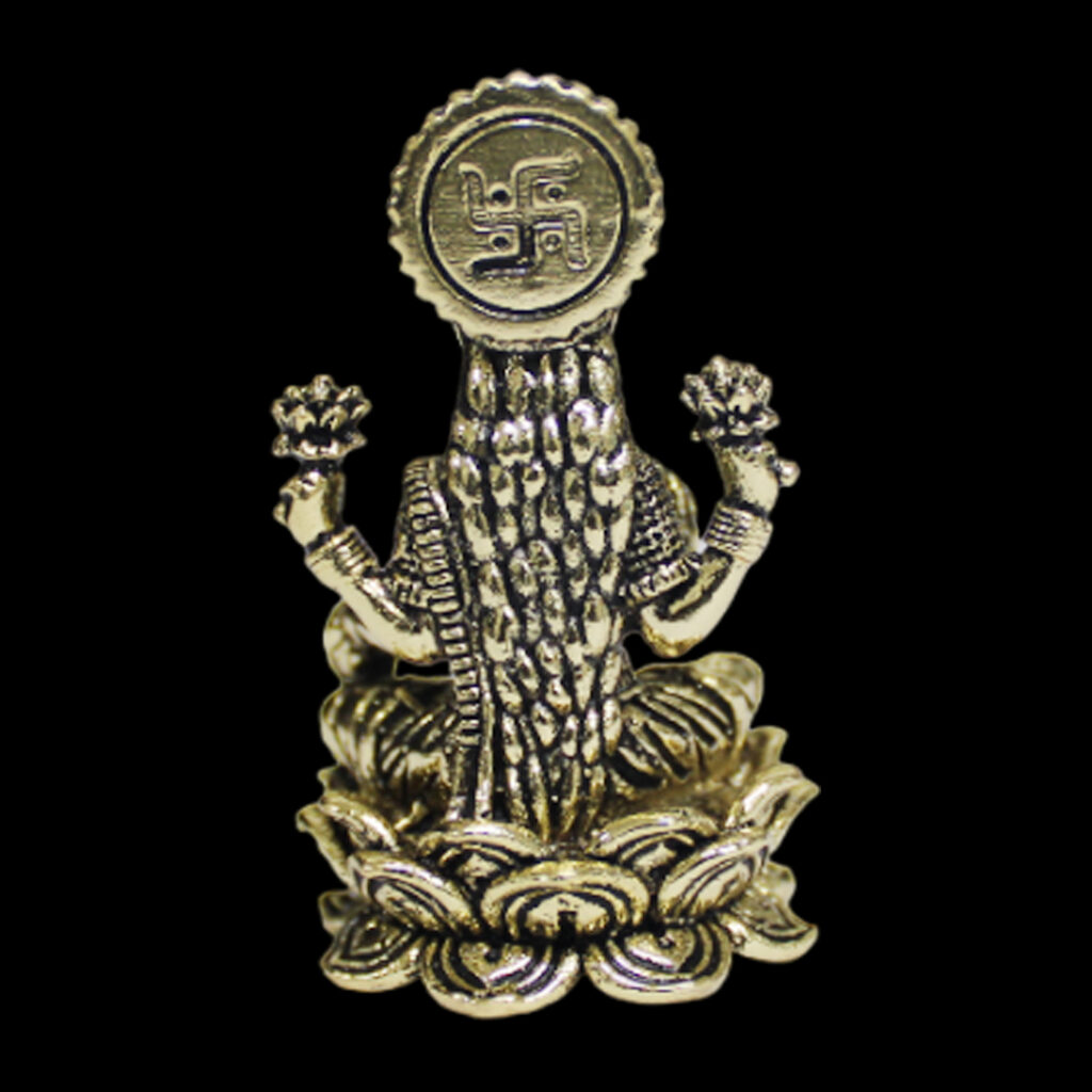 - A brass Lakshmi Mata idol is a beautiful representation of the Hindu goddess of wealth, prosperity, and abundance. Typically, these idols are meticulously crafted from brass, a durable and elegant metal, which gives them a timeless, golden sheen. The statue features Goddess Lakshmi seated on a lotus, symbolizing purity and divine beauty. Her four arms often hold various items that represent wealth, fortune, and well-being—commonly a lotus flower, a pot of gold, and a pair of hands raised in blessings.