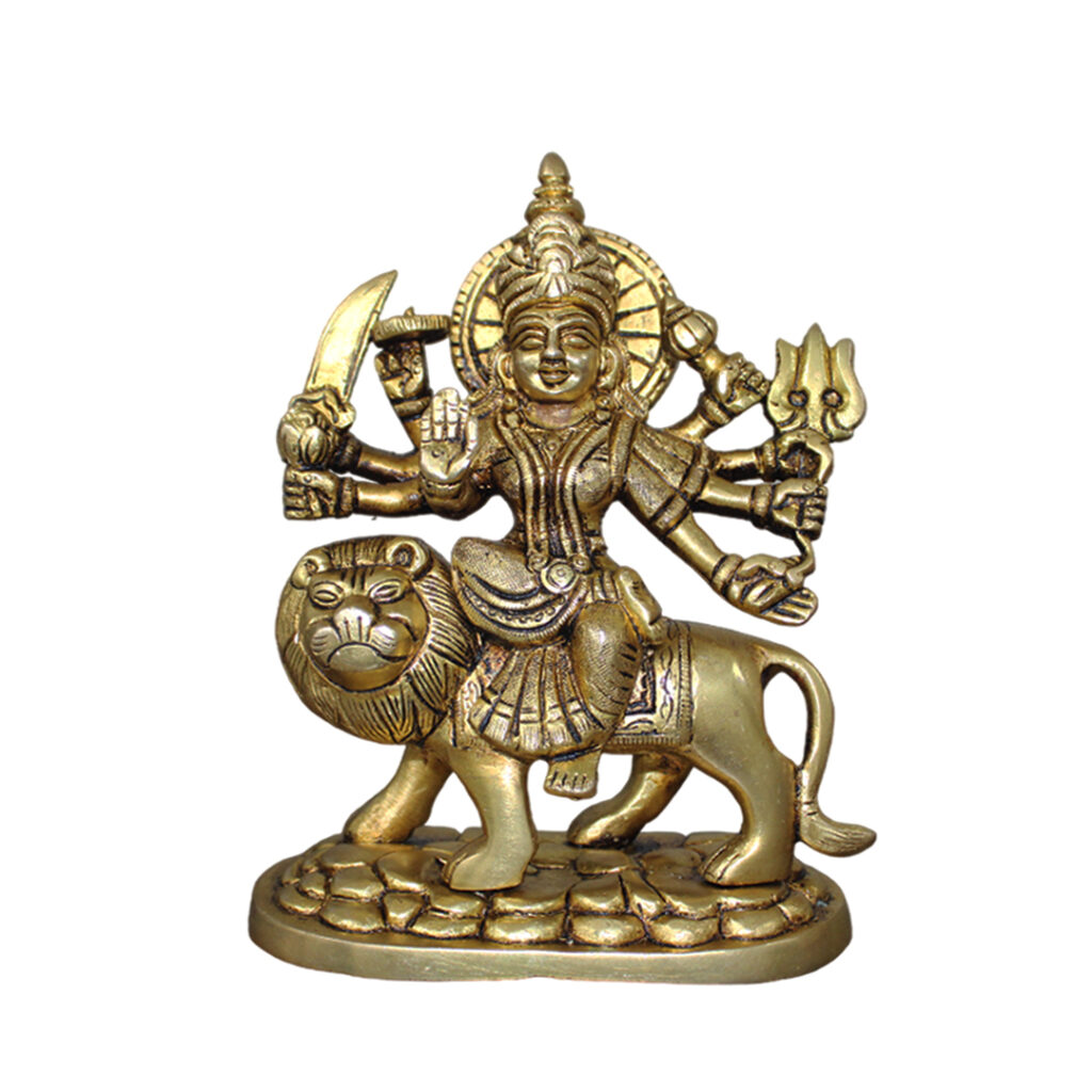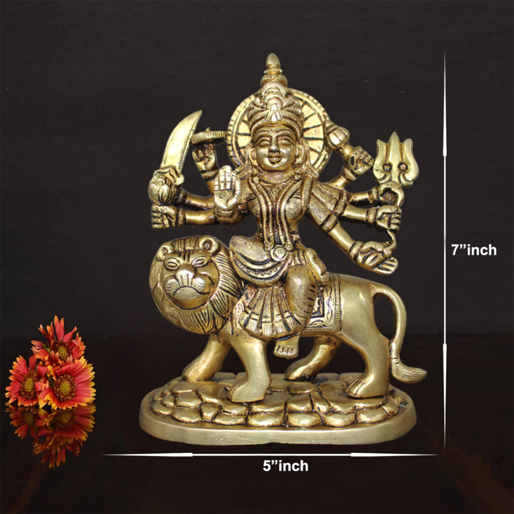 - This Brass Amba Mata idol is ideal for daily pooja rituals, Navratri celebrations, and other auspicious occasions. It adds a sacred aura to your worship space, creating an atmosphere of devotion and reverence. The idol is designed for easy placement on pooja altars, shelves, or temple corners, allowing devotees to perform rituals and prayers with ease. Whether you’re celebrating Amba Mata during Navratri or using this statue for regular spiritual practices, it enhances the energy of your sacred space.
