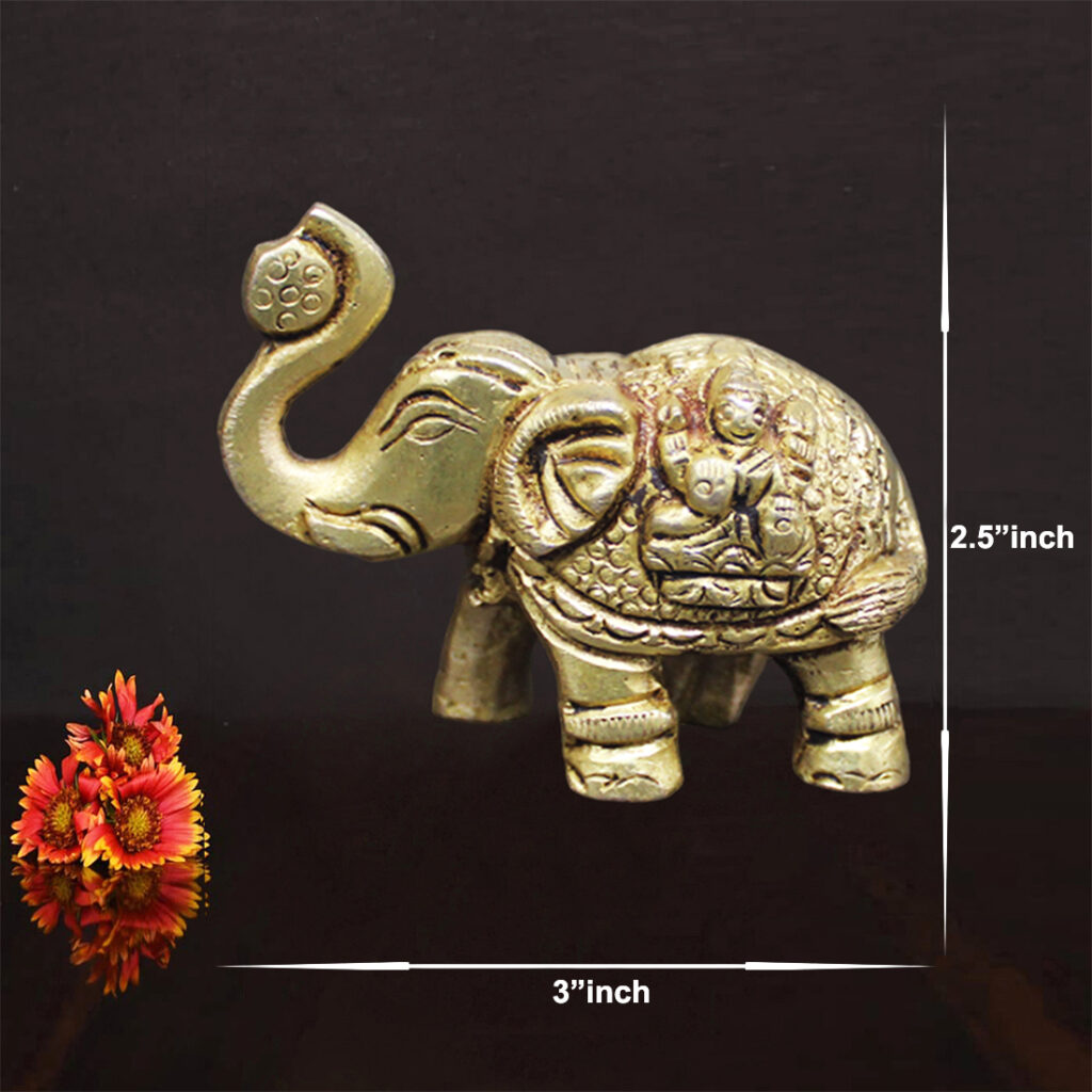 - This Brass Elephant Idol is not just a decorative piece but a meaningful representation of cultural and spiritual values. It serves as a thoughtful gift for various occasions like housewarmings, weddings, anniversaries, or festivals, conveying wishes of prosperity and happiness. Its sturdy brass construction ensures that it will last for years, maintaining its shine and appeal with minimal maintenance.
