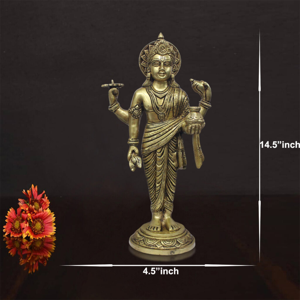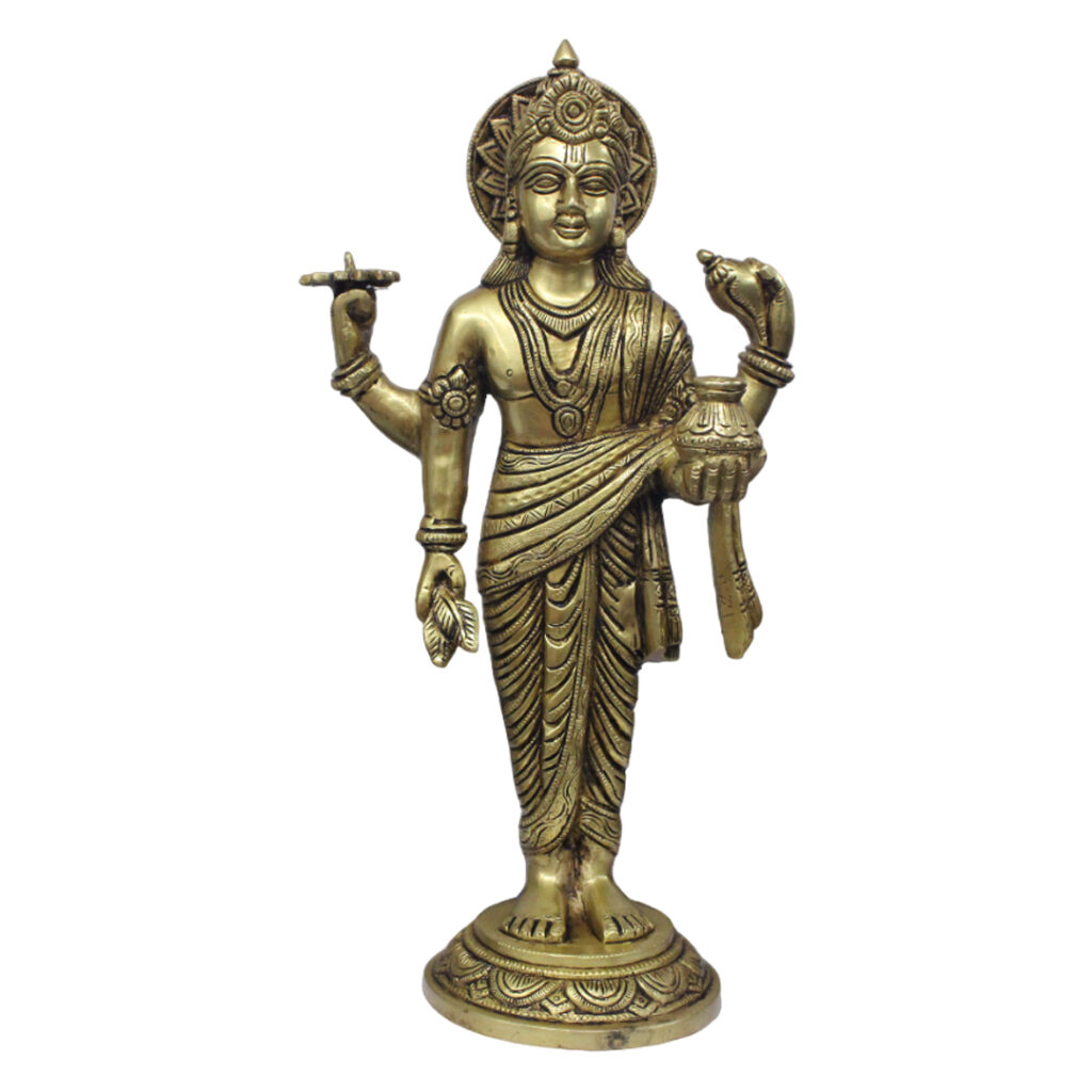 Be the first to review “A Pure Brass Statue of Dhanvantari Idol of Ayurveda, Brass Lord Vishnu Avtar, for Home Decor Idol for Mandir Puja.”