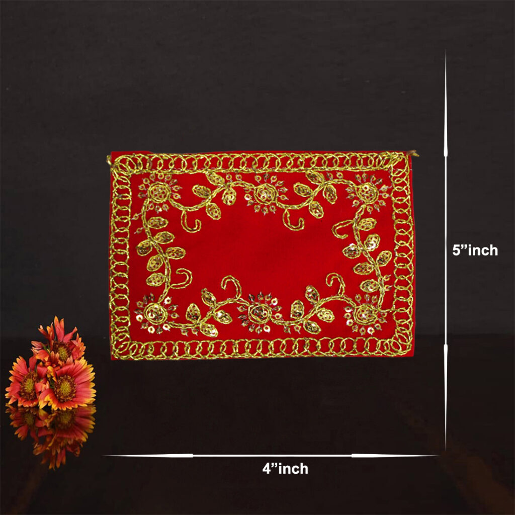 - This Aarti Thali is thoughtfully designed with designated spaces for all your pooja essentials. It includes sections for a diya (lamp), incense sticks, and offerings such as flowers and sweets. The spacious design allows you to organize your items efficiently, ensuring that your rituals are conducted smoothly and with reverence.