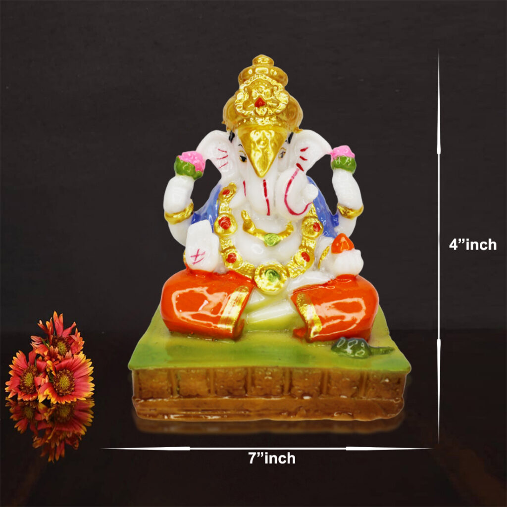 - This exquisite idol seamlessly blends devotion and craftsmanship, serving as a source of inspiration and a spiritual anchor. Embrace the blessings of Lord Ganesh with this timeless piece that combines tradition, artistry, and a touch of divinity.