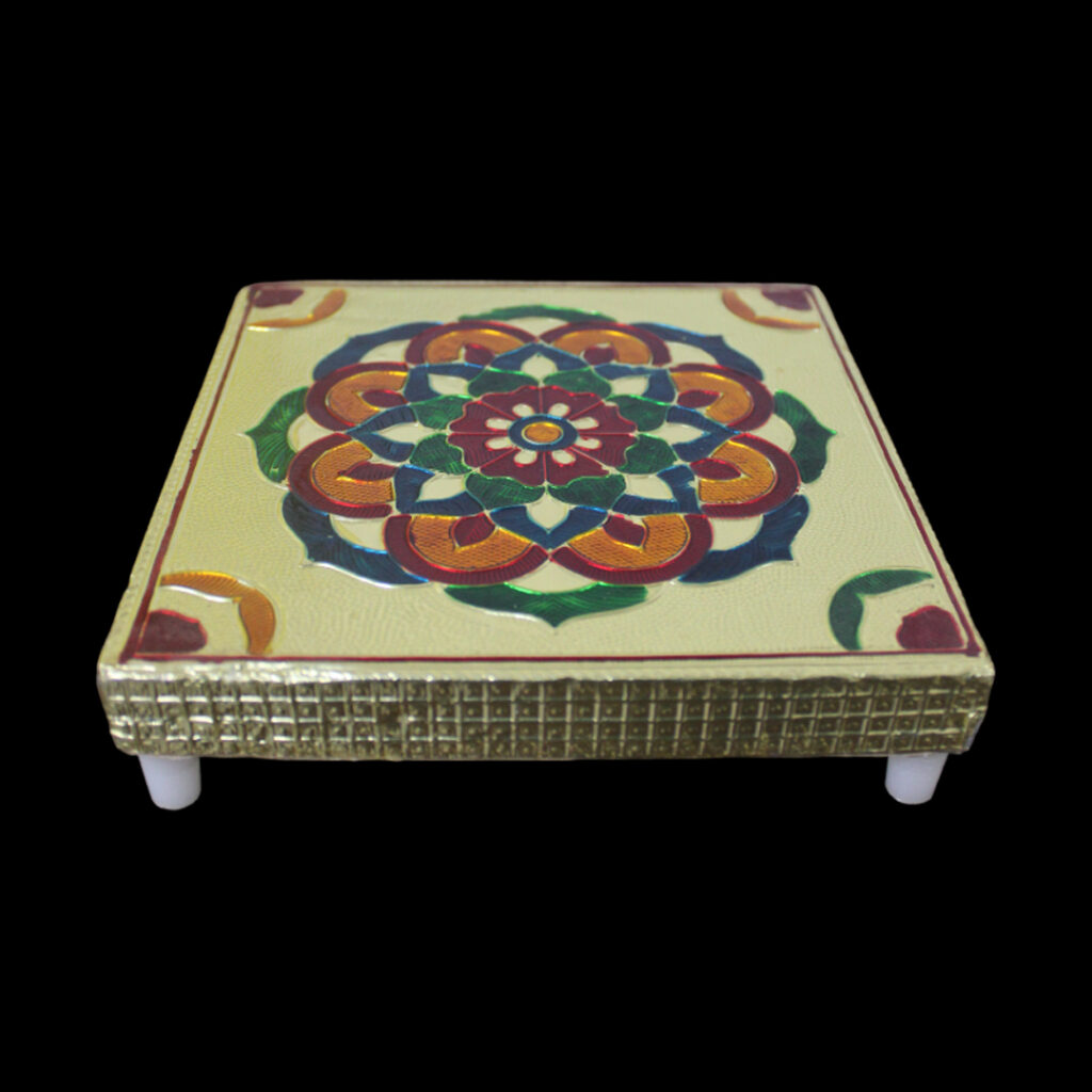 - Foldable and Functional: Our chaurang for pooja chowki big size is not only aesthetically pleasing but also practical, as it can be easily folded and stored when not in use, perfect for modern lifestyles. chowki for pooja with Rangoli Design: Our wooden Chowki features a traditional rangoli design.