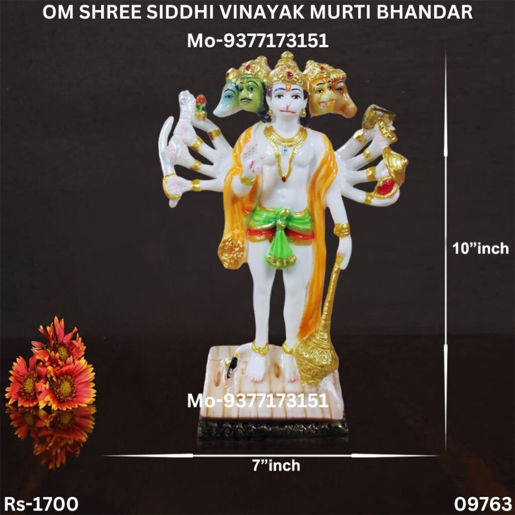 A Pure Synthetic Marble Panchmukhi Hanuman Ji Idol/Murti/Statue for Puja in Pujaghar.