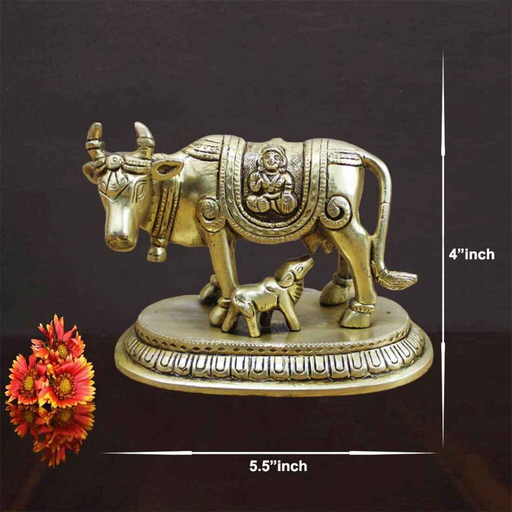 Brass Kamdhenu: Divine Cow of Abundance, Fulfillment, and Prosperity, Bringing Blessings of Wealth and Harmony into Your Home