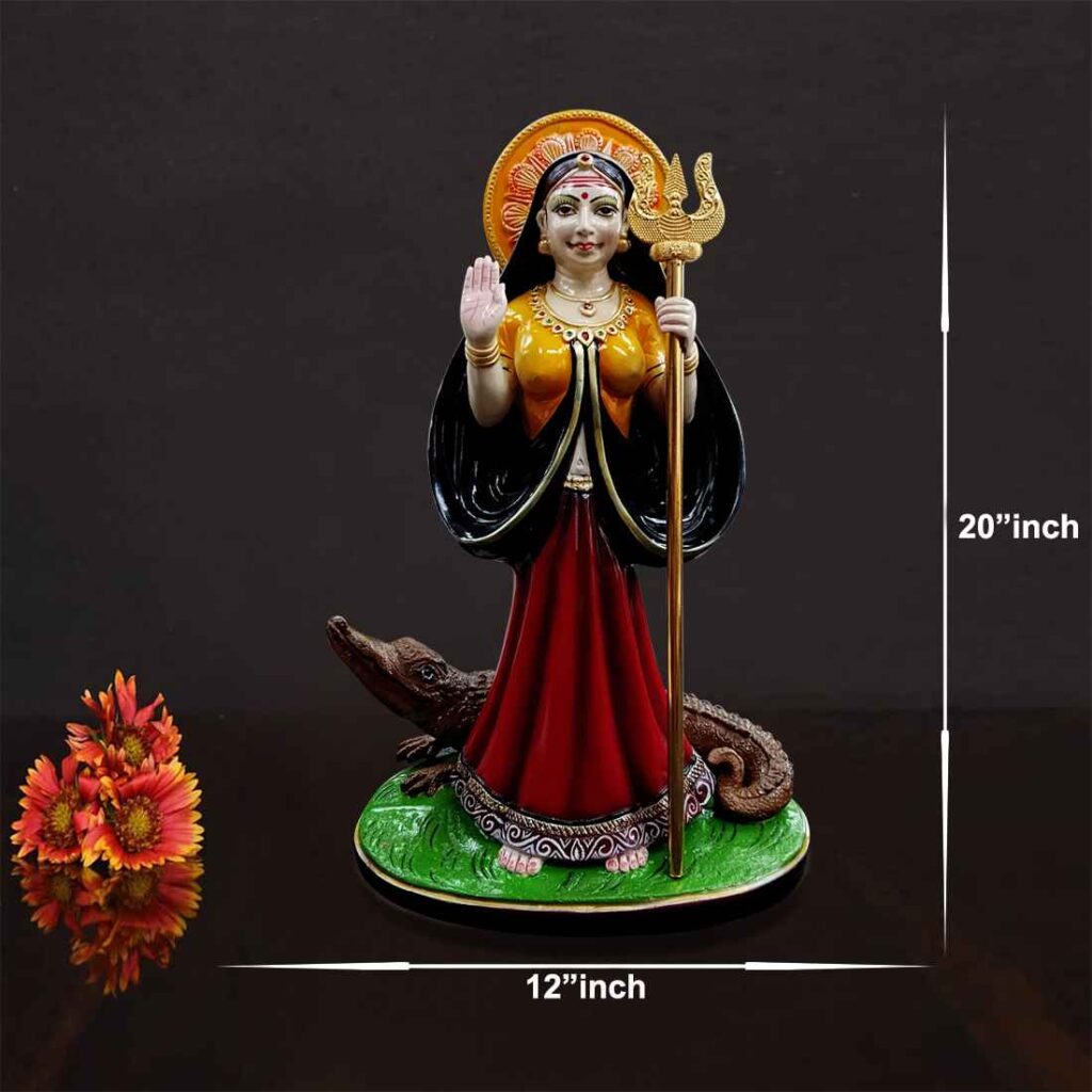 • The Marble Khodiyar Mata Idol is a revered spiritual representation of Khodiyar Mata, a popular goddess worshipped in Gujarat and Rajasthan. Known for her protective and healing powers, Khodiyar Mata is believed to guard her devotees from evil forces, bring prosperity, and provide blessings for health and happiness. The idol is meticulously crafted from high-quality marble, a material symbolizing purity and permanence, which enhances the idol’s divine aura.
