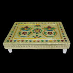 Description:- This exquisite Bajot, meticulously handcrafted by skilled artisans, features intricate designs and fine detailing that reflect the rich heritage and artistry of woodworking. Made from high-quality, durable wood, the Bajot is designed to offer both elegance and resilience. Its compact size makes it ideal for a variety of uses, whether as a decorative piece, a functional platform for small items, or a traditional pedestal for religious or ceremonial purposes. The smooth, polished finish of the wood adds a touch of sophistication and warmth to any space, complementing various interior styles, from classic to contemporary. This Wooden Small Bajot is versatile enough to be used in different settings—place it on a mantel, table, or altar to showcase your favorite decorative items, candles, or spiritual artifacts. It also makes a thoughtful and practical gift for special occasions such as weddings, housewarmings, or religious events, symbolizing good fortune and elegance. Easy to maintain, the Bajot requires only occasional dusting to keep its pristine condition and natural luster. Its timeless design and craftsmanship ensure that it not only serves a functional purpose but also adds a touch of grace and tradition to your home. Embrace the beauty and versatility of this Wooden Small Bajot, a piece that seamlessly blends artistry and utility,